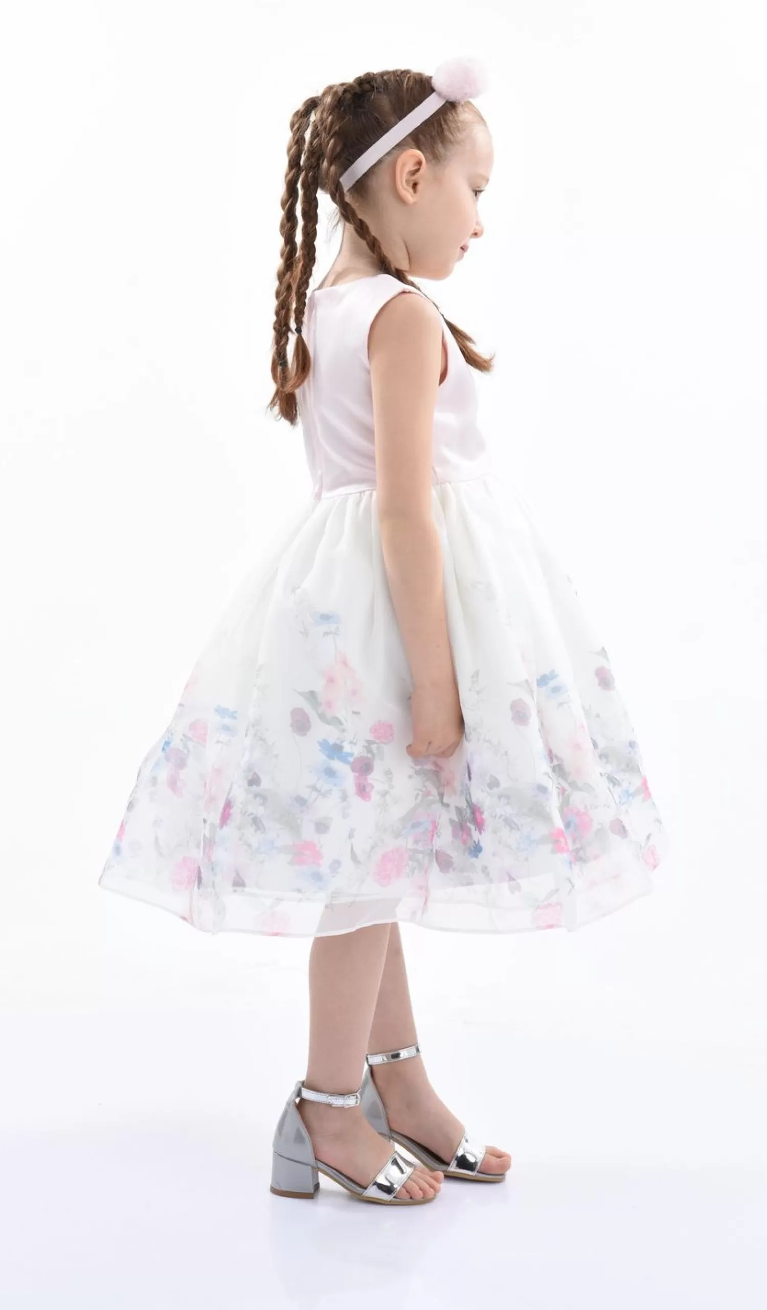 Pink Mabel Floral Garden Organza Dress For Kid Girls From Tulleen. The Mabel Dress Boasts A Sleeveless Satin Round Neck Bodice That Offers Both Comfort And Elegance. The Magical Centerpiece Of This Dress Lies In Its Dreamy White Lightweight Tulle Skirt Adorned With A Mesmerizing Floral Garden Design. The Intricate Patterns Come Alive With A Burst Of Vibrant Floral Colors.